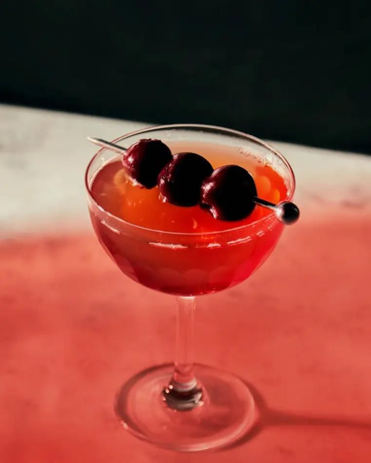 方法: かき混ぜるグラスまたはボストン缶にすべての材料を加え、氷を満たして 15 ~ 20 秒間かき混ぜ、冷やしたクーペに濾し、最後の仕上げとしてチェリーをカクテルに落とします。 。
