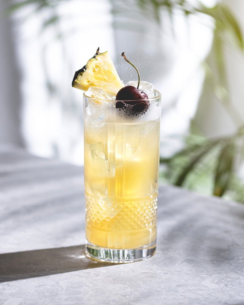 立方体氷が入ったカクテルシェーカーにラム、ライム、パイナップル、シロップを加え、シェイクし、ティキマグカップまたは大きなハイボールの割れた氷の上で濾します。ジンジャービーンとサイチョウダージリンをトッピングし、砕いた氷をトッピングして飾ります。仕える。