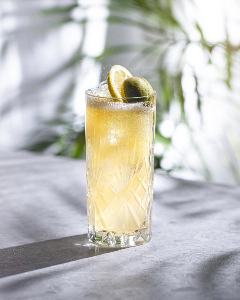 立方体氷を満たしたカクテルシェーカーに最澄ダージリン以外のすべての材料を加え、強く振り、ハイボールグラスに入れた立方体氷の上で濾します。最澄ダージリンをトッピングし、飾り付けてお召し上がりください。